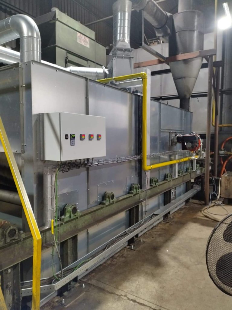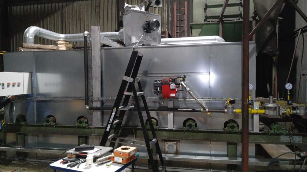 Für einen Spezialisten auf dem Gebiet des Strahlens und Konservierens aller Arten von Stahl haben wir einen industriellen Vortrockner in dessen Stahlkonservierungslinie ersetzt. Der neue Vortrockner ist mit drei Bentone BG450M-Gasbrennern ausgestattet. Modulierende Gasbrenner mit einer maximalen Leistung von jeweils 550 kW.